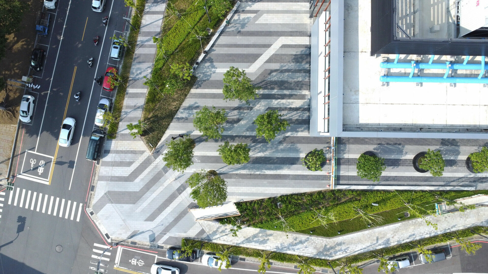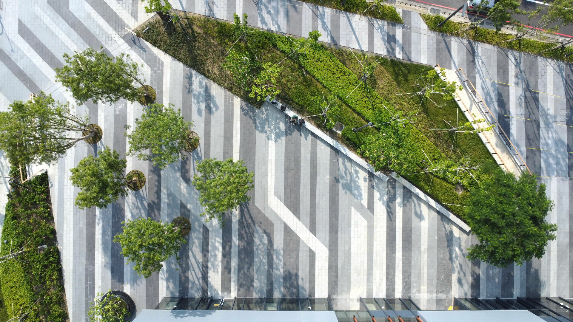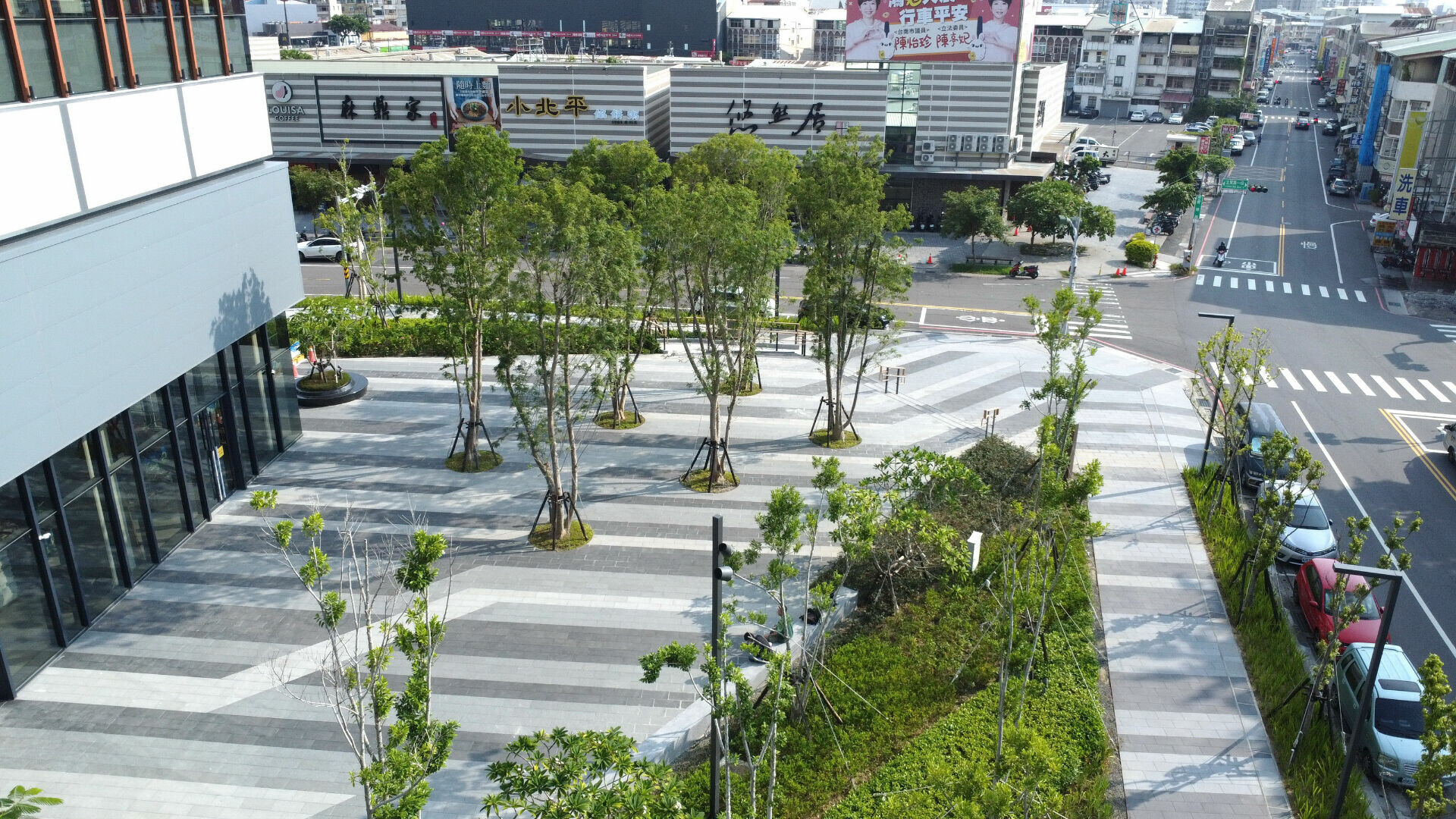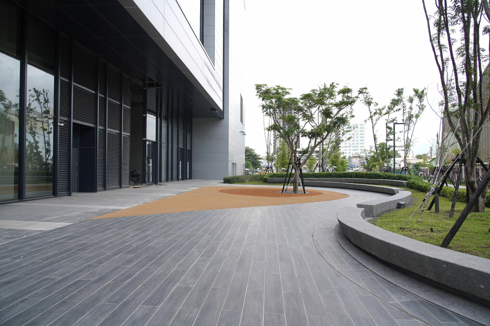 整體景觀搭配建築造型語彙及基地周邊環境做發想,運用有機的線條、地形,搭配植栽、人行步道及休憩廣場等空間元素,營造出具流動感的空間特色。在植栽配置上也選擇具有台南特色及符合南台灣氣候之樹種;於旅館入口處配置三株主景喬木,為台南市樹鳳凰木,而草坪廣場兩側為極具熱帶風情的緬梔,在街角廣場及人行步道兩側則為土肉桂、烏心石及光蠟樹等。地被灌木具四季變化,如扶桑、番茉莉、蜘蛛百合等,以繽紛花色創造歡愉的空間氣氛。